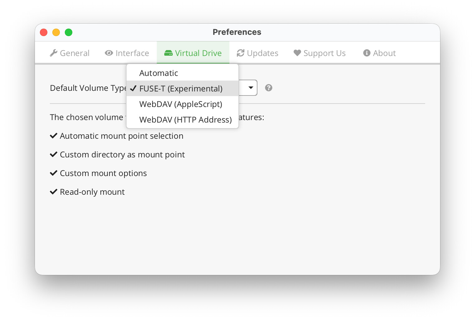 I uninstalled and reinstalled macFUSE several times - both via Homebrew and the installer from the website. macFUSE has been authorized in Privacy & Security. Also uninstalled and reinstalled Cryptomator without success. macFUSE just doesn’t show up in the GUI: